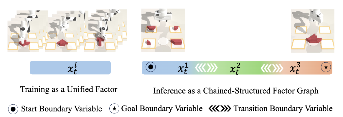 Compositional Visual Planning via Inference-Time Diffusion Scaling is a training-free framework that extends diffusion models from short-horizon to long-horizon robot planning. Instead of averaging independently denoised segments—which leads to instability in noisy spaces—it enforces boundary consistency on Tweedie estimates through a combination of synchronous and asynchronous message passing across a chain-structured factor graph. This inference-time approach produces globally coherent plans and significantly improves generalization to unseen start–goal tasks across diverse simulation environments.